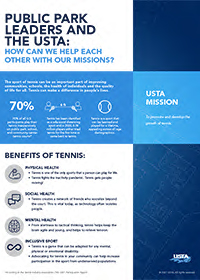 Develop your approach to advocate for tennis in your community with communication tactics, funding source examples and more.